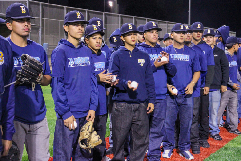 “This is well deserved for the boys and the community,” Contreras said. “Anytime we hit a foul ball and it hits the netting, what do you guys yell? You yell, ‘Joe Baca!’ Every time the ball hits the net — ‘Joe Baca!’ I just want to say thanks to Supervisor Joe Baca Jr., Mr. Miranda, the entire school board, Mr. Dan Flores, our booster parents and the whole community. This wouldn’t be happening without your support. You treat these boys like champions all the time. They get a lot of good gear, and that’s good stuff for us. The biggest thing is we’re ready to play ball.”