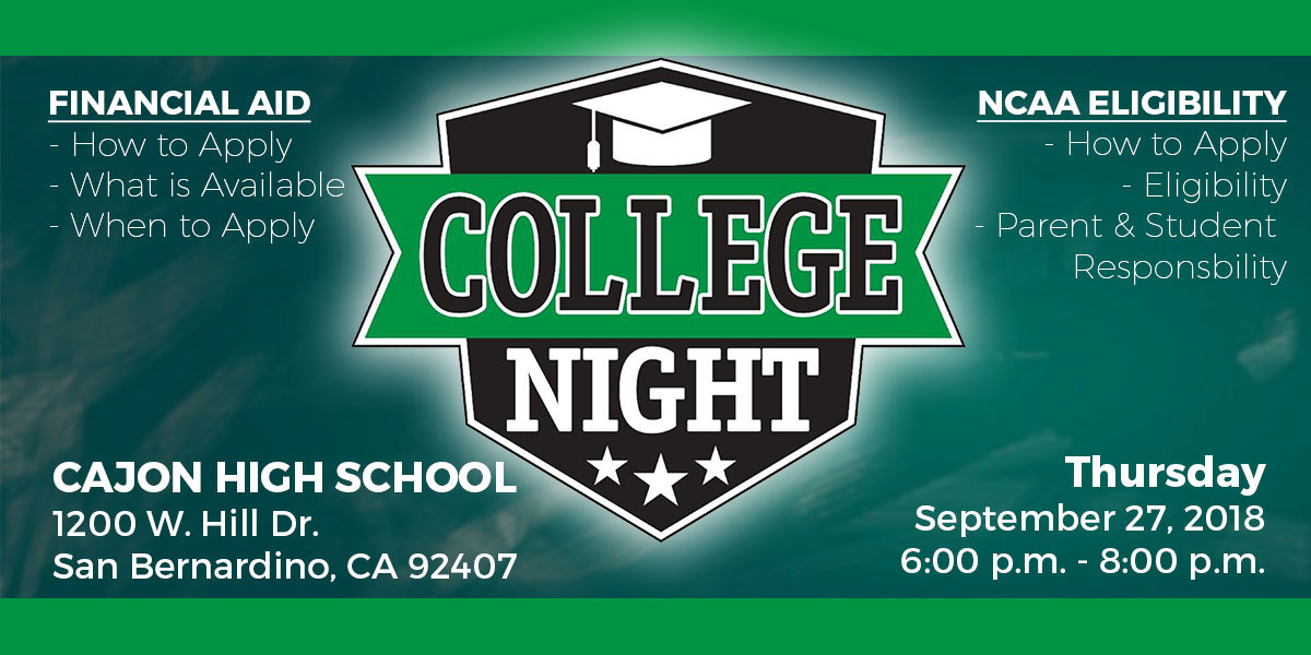 Cajon High School is hosting the SBCUSD’s 28th Annual College Night on Thursday, September 27 from 6 to 8 p.m.