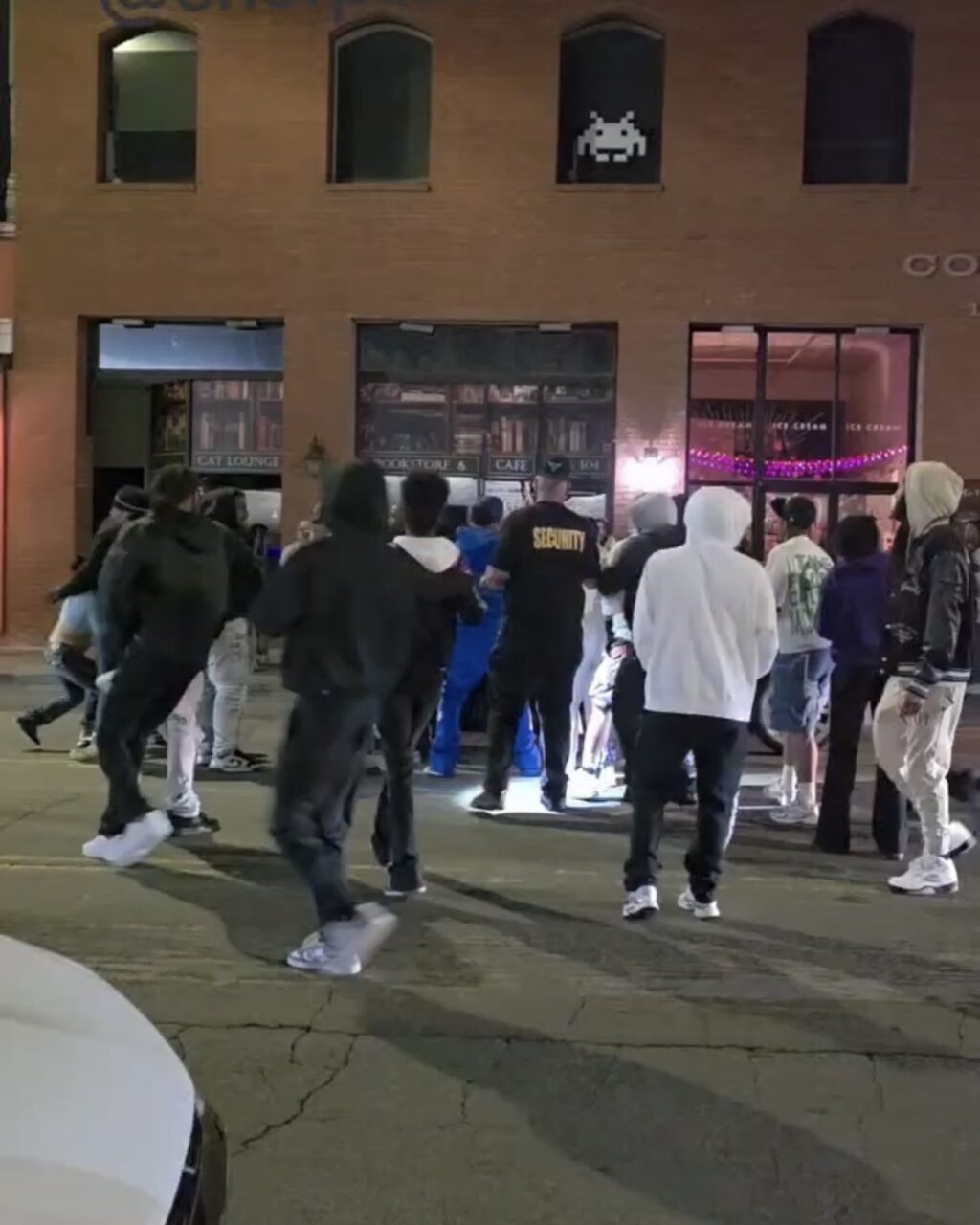 “They had hit the window and shattered it,” she said. “The window was shattered at the entrance to The District and The Underground as well. Like a bullet had hit the door.”