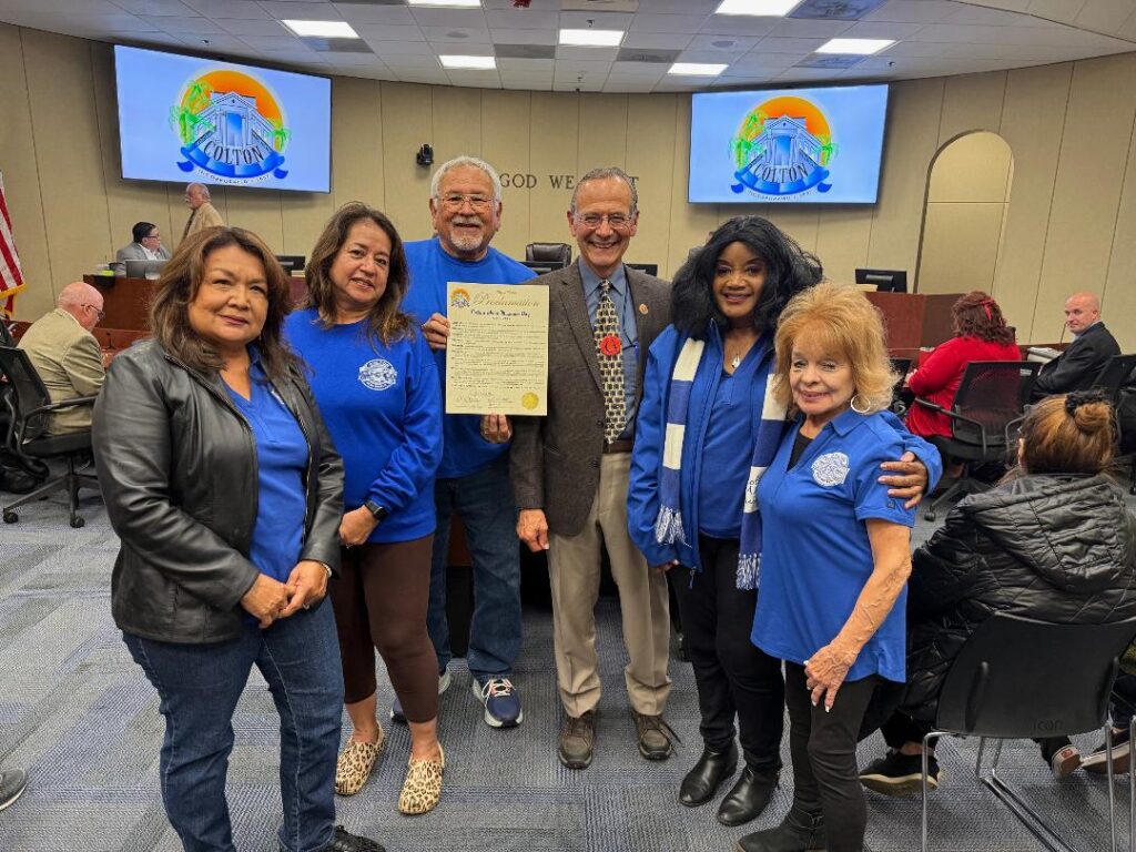 At the recent Council meeting May 6, the Colton City Council recognized by proclamation the Colton Area 12th Annual Museum Day, which has been observed since 2014 on the first Saturday in May. The proclamation was presented to five members of the Colton Area Museum Association (CAMA) Board of Directors, by Council Member, Dr. G, who is a CAMA Life Member. The CAMA Board Members in attendance were Oscar Toastado, Mary Helen Betancourt, Ruth Ann Martinez, Lori Sanchez, and Angela Wilkenson.