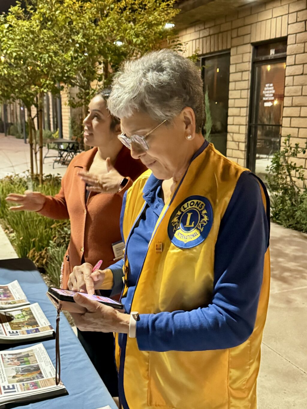 Photo by Manny Sandoval: Colton Lions Club Secretary Soledad Morden reviews the judging criteria for the 2026 Student Speaker Contest during a community event.