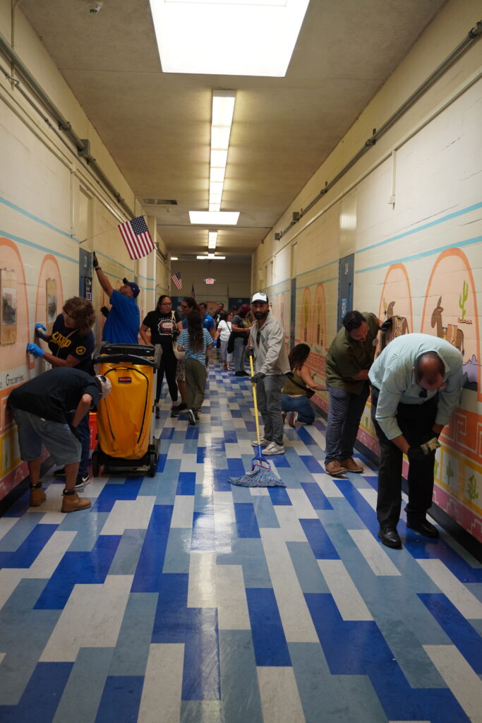 Highlighting the joyous nature of the event, mariachis performed while enthusiastic volunteers worked on campus beautification projects. Assemblymember Robert Garcia, D-50th District, joined in by scrubbing murals depicting Colton landmarks that line Wilson’s hallways. A special volunteer, 97-year-old Irene Llamas Campos, recalled her days at the school (then named Garfield Elementary) and shared a song with the crowd that Rivera used to sing to her when they were young.