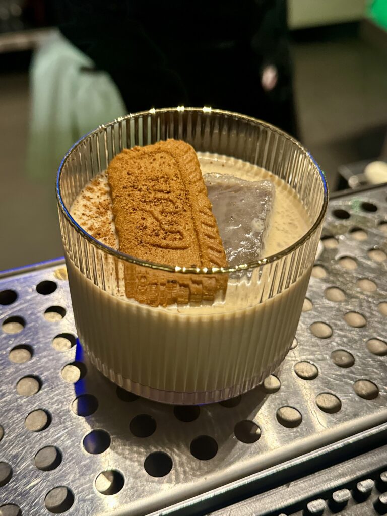 On my trip, the holiday cocktail menu was the standout, led by a seasonal drink called Big Nick Energy — built with bourbon crème, amaro, coffee liqueur and crème de cacao, finished with a Biscoff cookie. It drank like dessert without becoming overly sweet, and it was made by Kevin, a bartender who was equal parts friendly and insightful — the kind of person who makes a new place feel instantly welcoming.