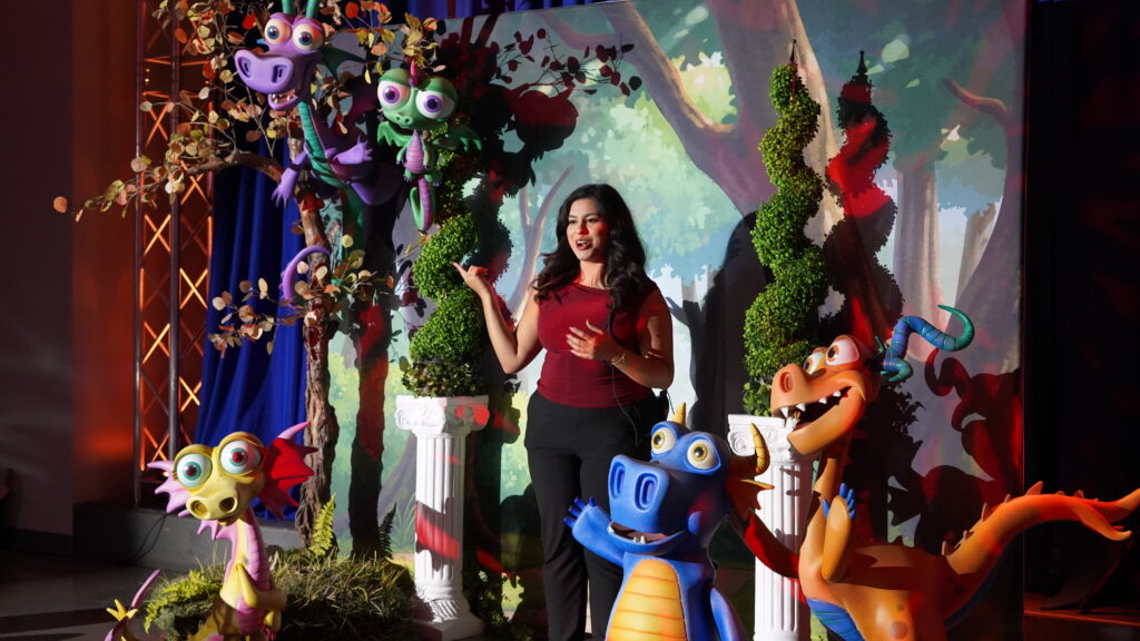 Vivian Alvarado, a junior designer at Education Through Imagination, helped lead the creation of the dragons’ names, personalities, and educational purpose. She said the characters started as static figures that quickly captivated visitors—even before they had identities.