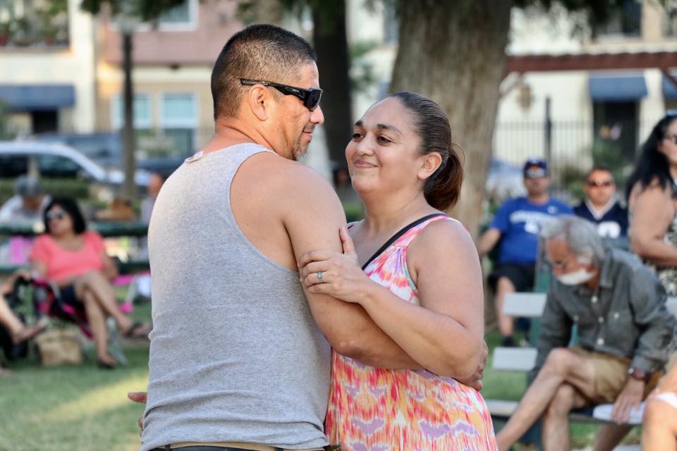 Photo/Anthony Victoria: Couple Gloria and Juan Arrieta were attracted to the park by the R&B and Soul sounds of the Jimmy Sterling Experience. “We just love their music,” explained Gloria Arrieta. “They always put on a good show.”
