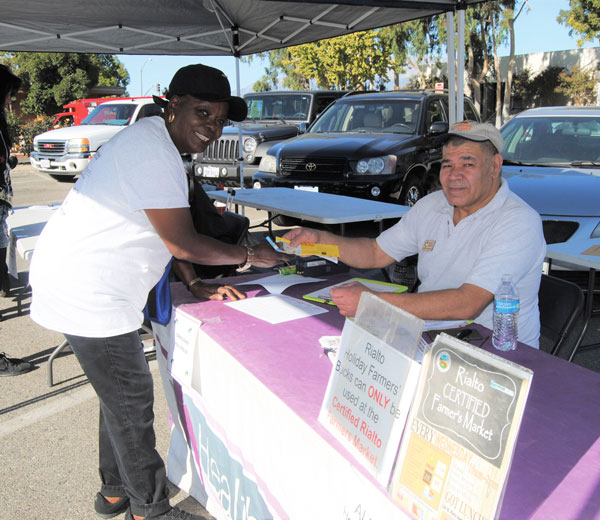 “This program was created by City Clerk Barbara McGee in 2007,” explained Gutierrez, “and each year (usually very close to the holidays) we are able to give out a special treat to the people in Rialto because of those who personally donate towards the Farmer Bucks distribution.  The City of Rialto and its sponsors are proud to provide this service to our residents. Not only does it help financially, it encourages a healthy-eating lifestyle.”