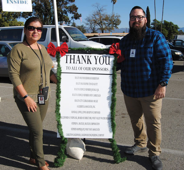 IECN photo Marina Rojas: Rialto Deputy City Clerk Maria Rodriguez and City Clerk Office Specialist Cristian Gutierrez in front of the sponsor board during Healthy Rialto program last Wednesday, Dec. 13.