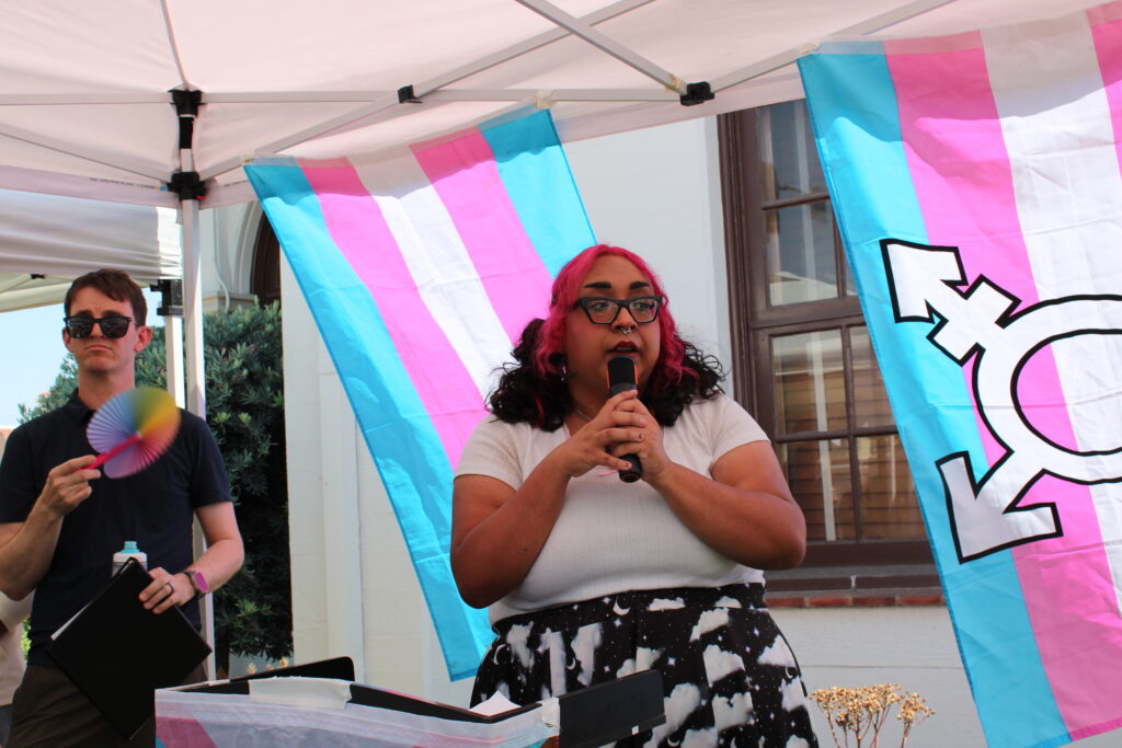Erika Ruiz, IE PRISM community organizing director and co-founder, speaking at a Redlands LGBTQ prayer vigil in June 2025.