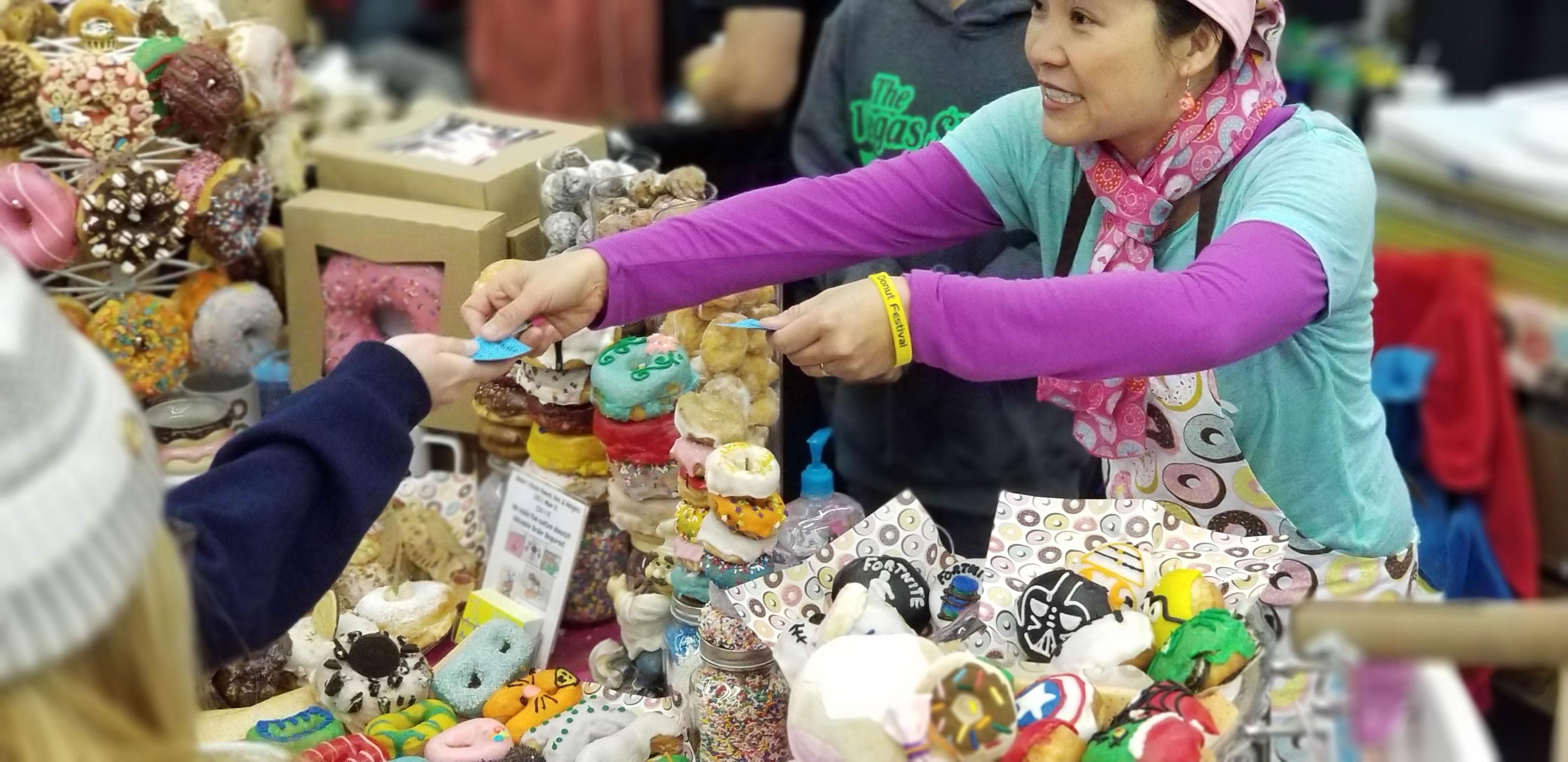 The event, which took place at the National Orange Show Events Center, offered donut and ciffee vendors, swag bags, contests and giveaways. With donut vendors hailing from as far away as Huntington Beach and as close as San Bernardino this event had a little bit of everything. Vendors enticed people to vote for them by offering samples of their best donuts and some even put together colorful displays at their booths.