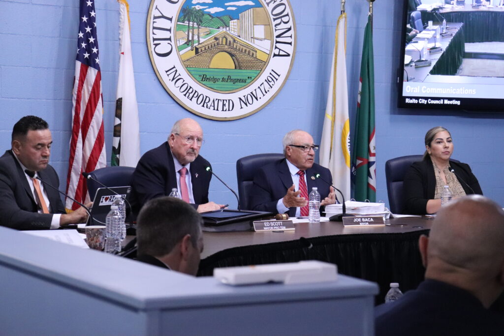 Photo by Christopher Salazar: Rialto City Council members deliberate strategies to resolve an emergency during the Nov. 25 session.