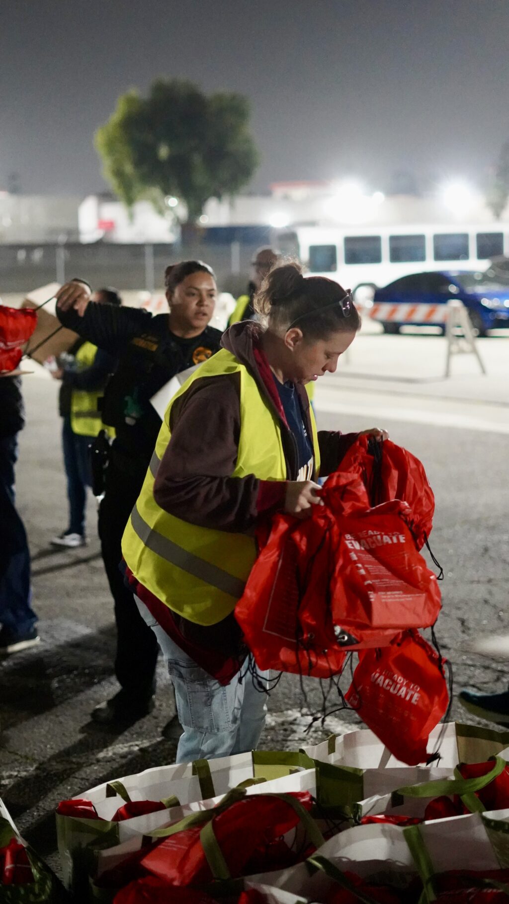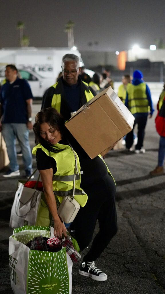 Photos by Manny Sandoval: A volunteer gathers hygiene kits at the NOS Center before deploying for San Bernardino’s annual Point-in-Time Count on Jan. 22, providing immediate supplies to unhoused residents while teams collect data tied to homelessness funding.