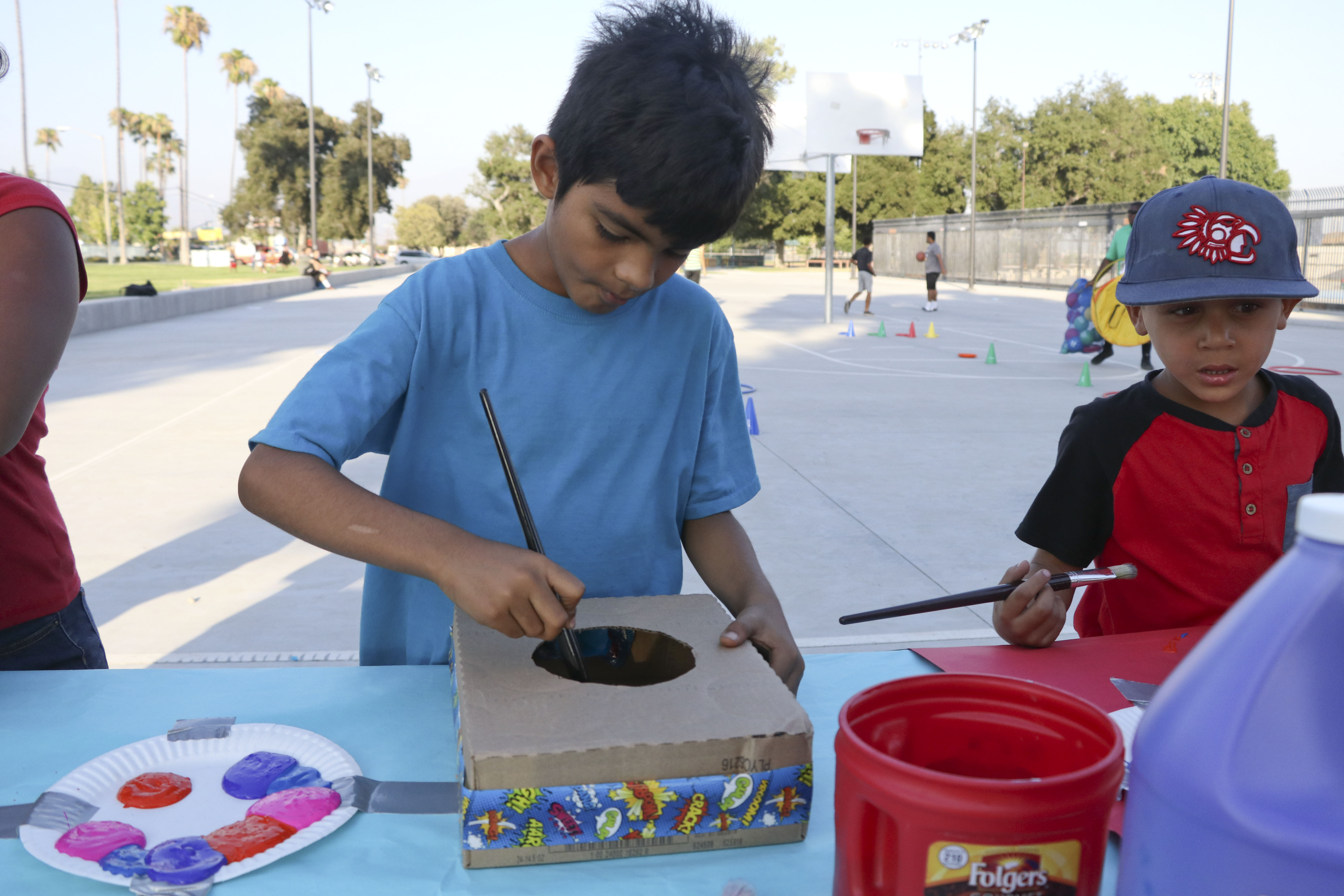 Photo/Anthony Victoria: San Bernardino resident Diego Valenzuela, 8, creating a two string guitar during the ‘Movies in the Park’ event at Nunez Park on June 30. The city’s Parks and Recreation Department will be screening movies at various parks throughout the month of July.