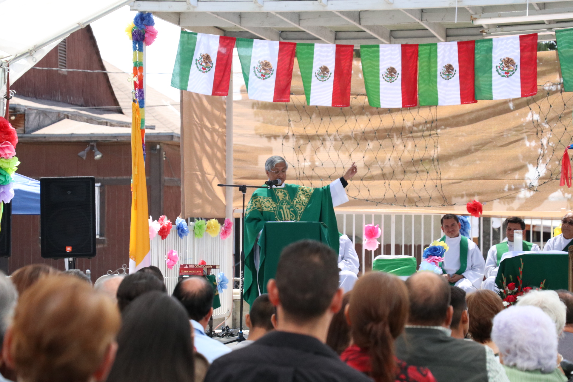 Photo/Anthony Victoria: Reverend Monsignor Gerard Lopez giving Sunday Mass near the San Salvador Church in Colton on Sunday September 4.