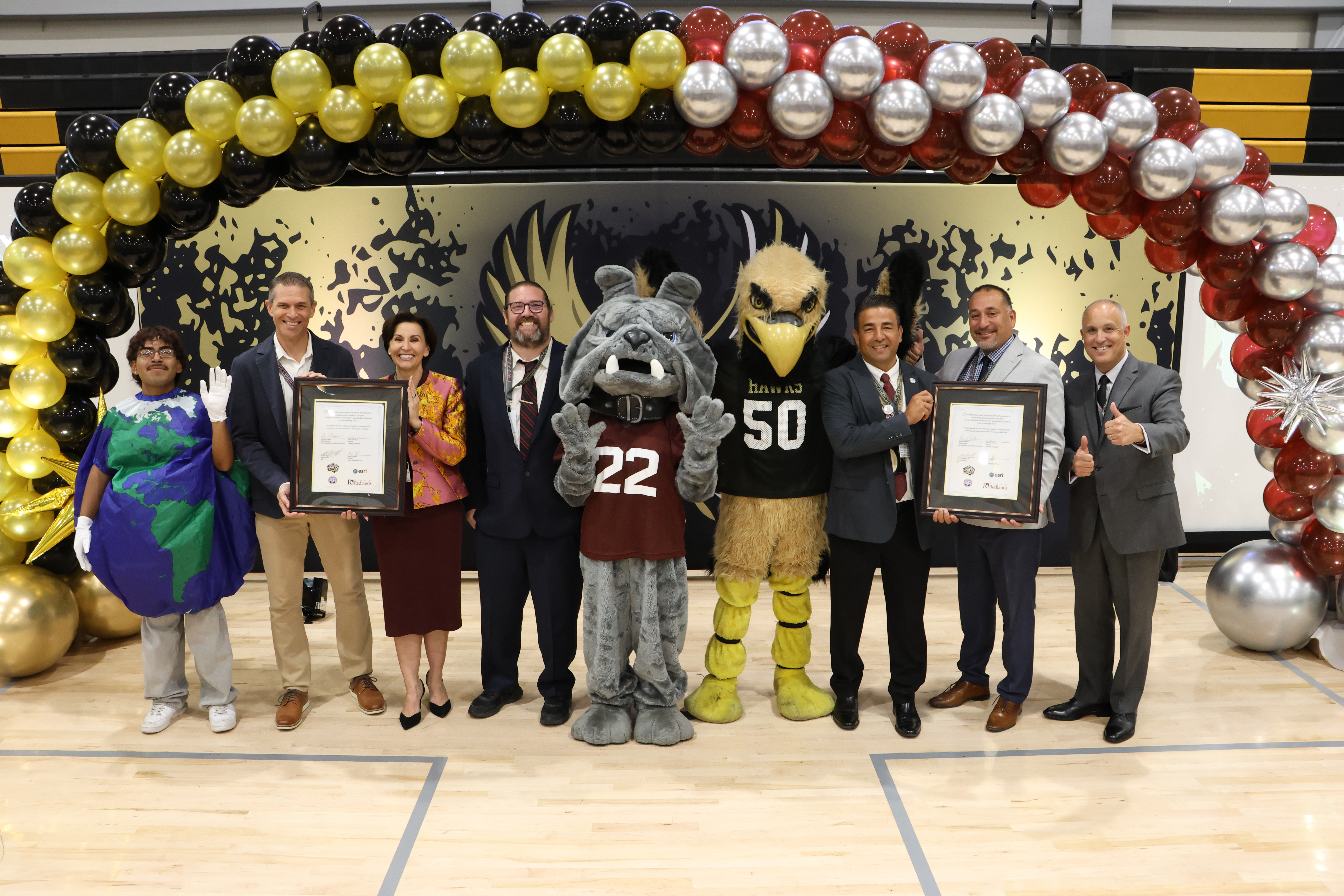 SBCUSD, AVHS, University of Redlands and Esri representatives participated in the signing ceremony on Oct. 1, 2025, in the AVHS gym, which included demonstrations highlighting hands-on student learning and outcomes that can translate to college and career success.