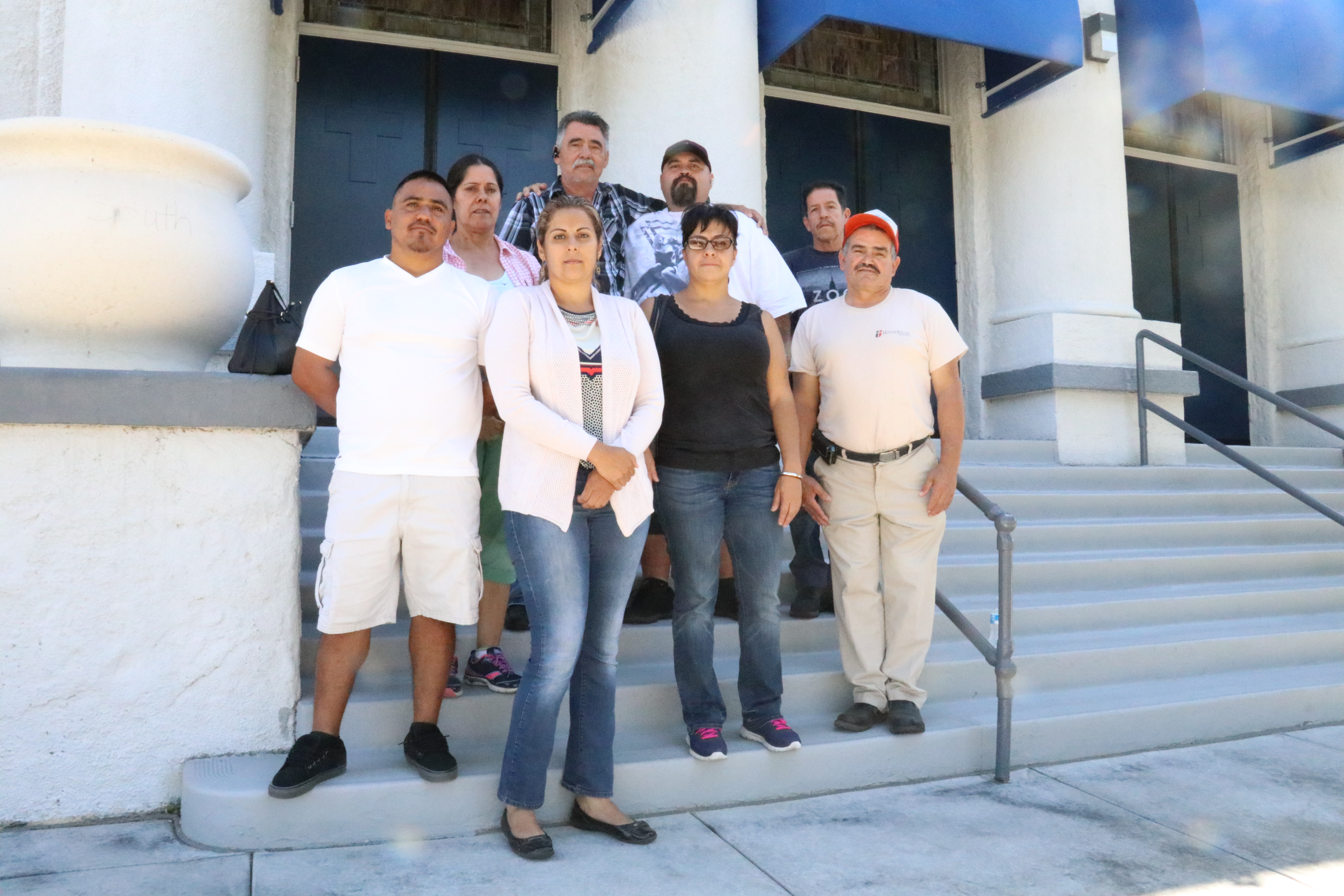Photo/Anthony Victoria: From left to right-Former Ashley Furniture employees Juan Zuniga, Vangelina Castillo, Rosie Serrano, Jose Urbina, Claudia Munoz, Israel Naja, Gabino Garcia, and Jose Luis Castellon.
